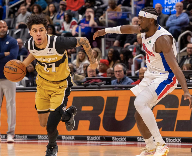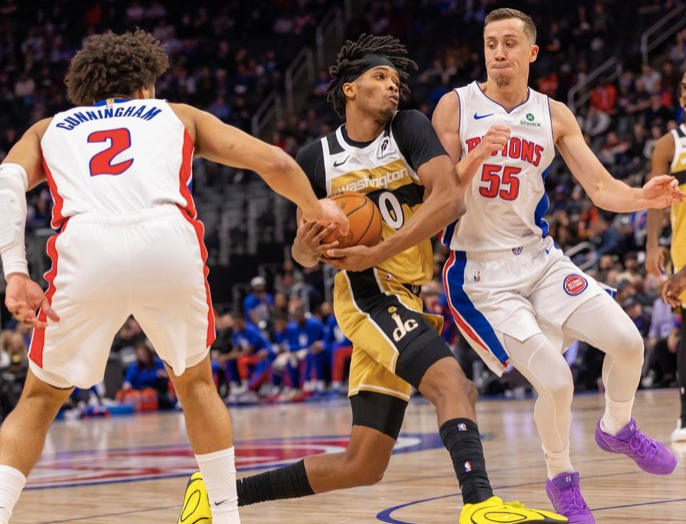 次节比赛,活塞上来进攻依然低迷,奇才则继续拿分,库珀突破打进取得22分领先,可在之后奇才进攻手感突然下滑,活塞则找回状态,连续突破和反击拿分,打出一波17-0攻势将分差迫近至3分,萨尔内线打进止血,霍兰抢断暴扣追至1分,莱利三分命中稳住,半场奇才56-52领先活塞。
