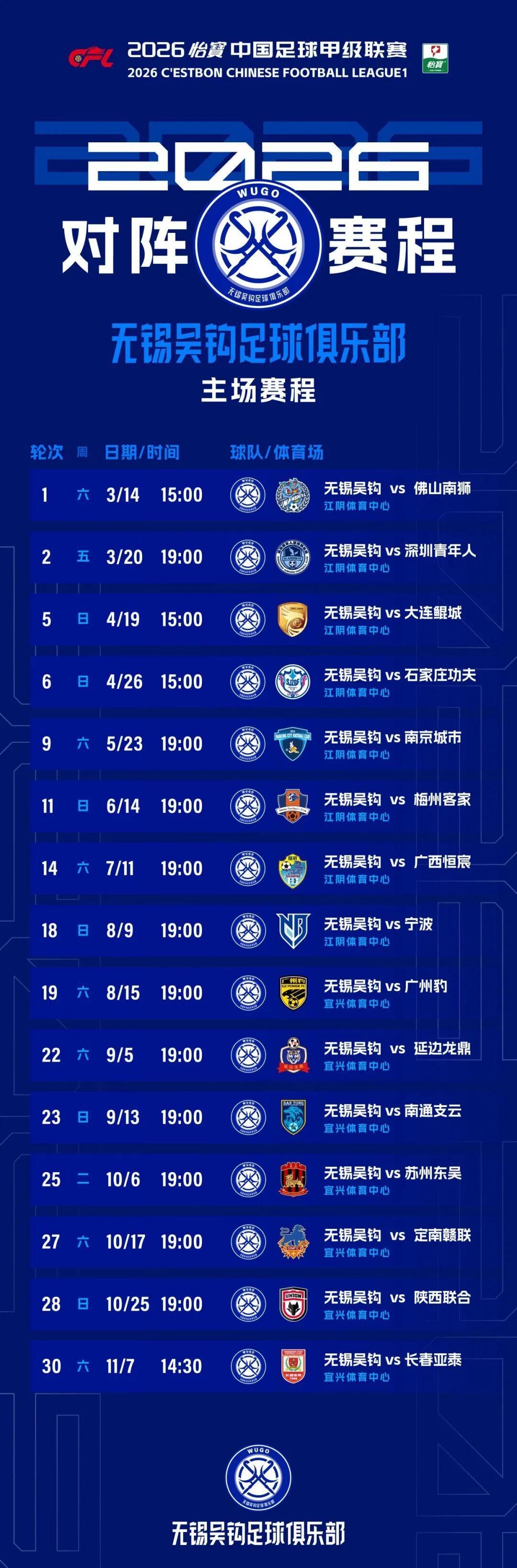 作为无锡一张亮眼的城市名片,无锡吴钩足球俱乐部去年成功“冲甲”,2026年正式迈入中国足球甲级联赛赛场。为在中甲赛场展现最佳实力,无锡吴钩在新赛季动作频频,不仅吸纳李博希、王圣博、郝柯森等多名实力派球员,更引入李博文、王鹏飞等青春力量,以新老结合的阵容蓄力新赛季。