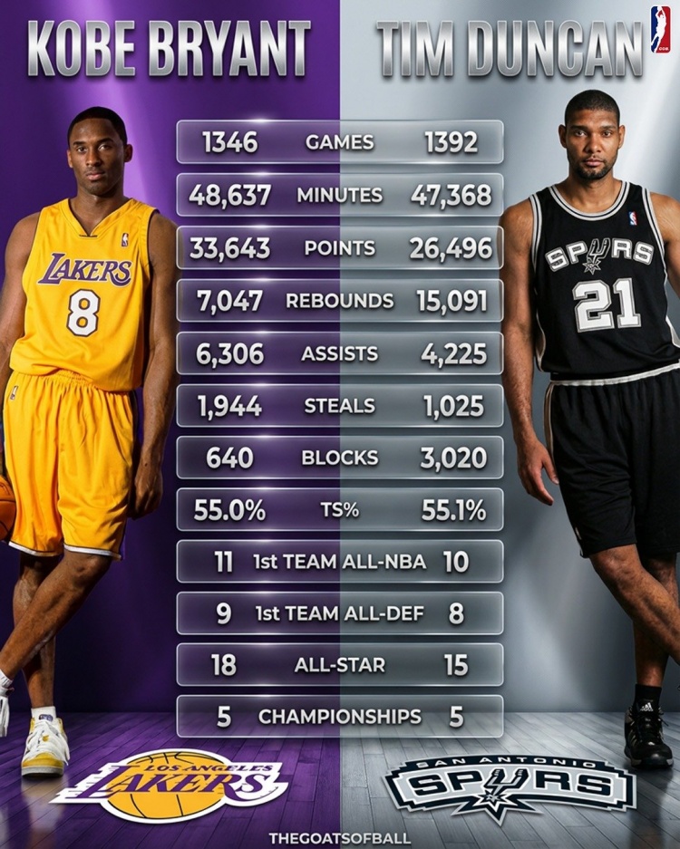 开云官网-谁历史地位更高?科比&邓肯生涯数据、荣誉多项对比!